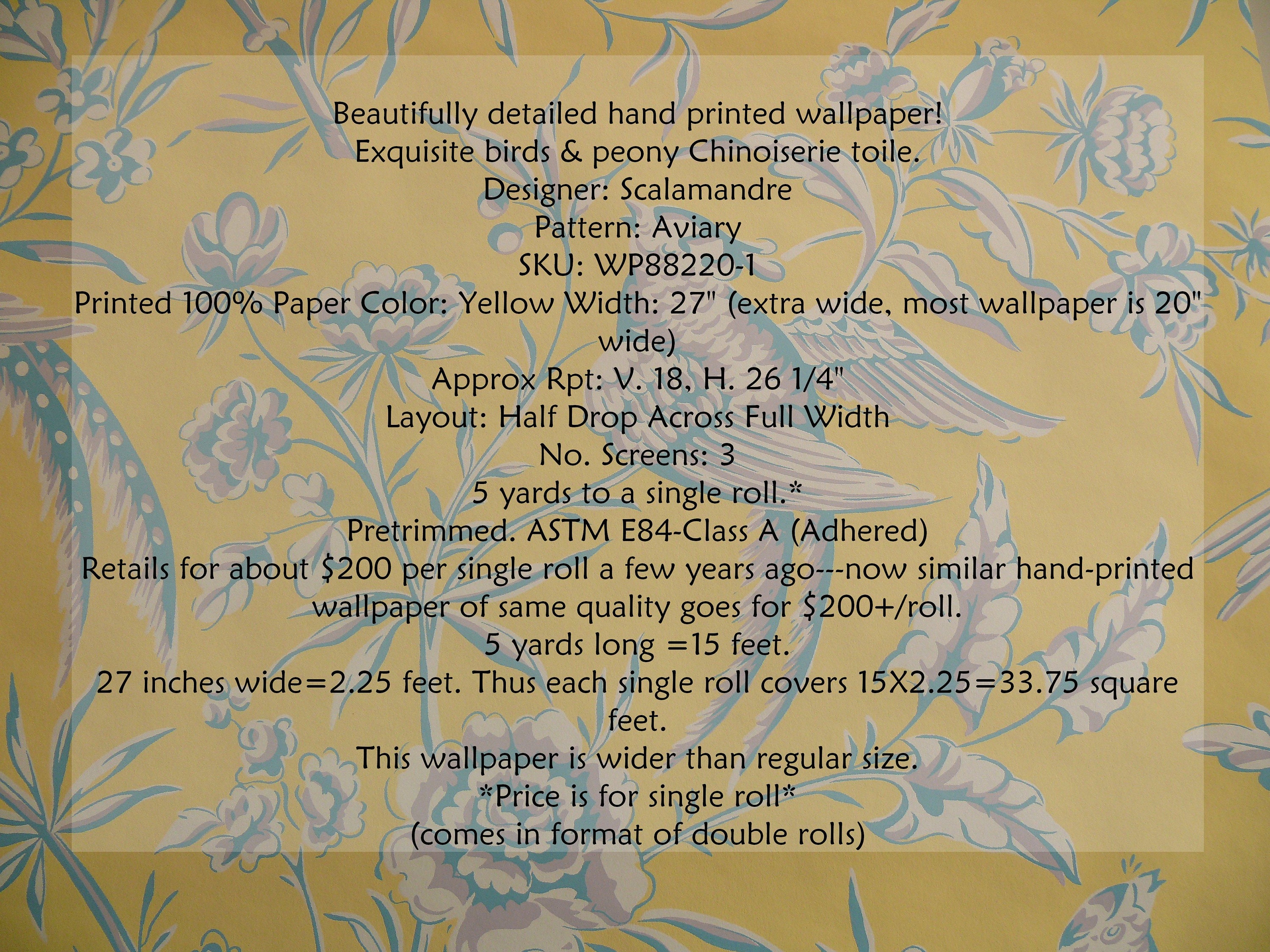 Single Roll Scalamandre Aviary Bird Chino Toile Etsy