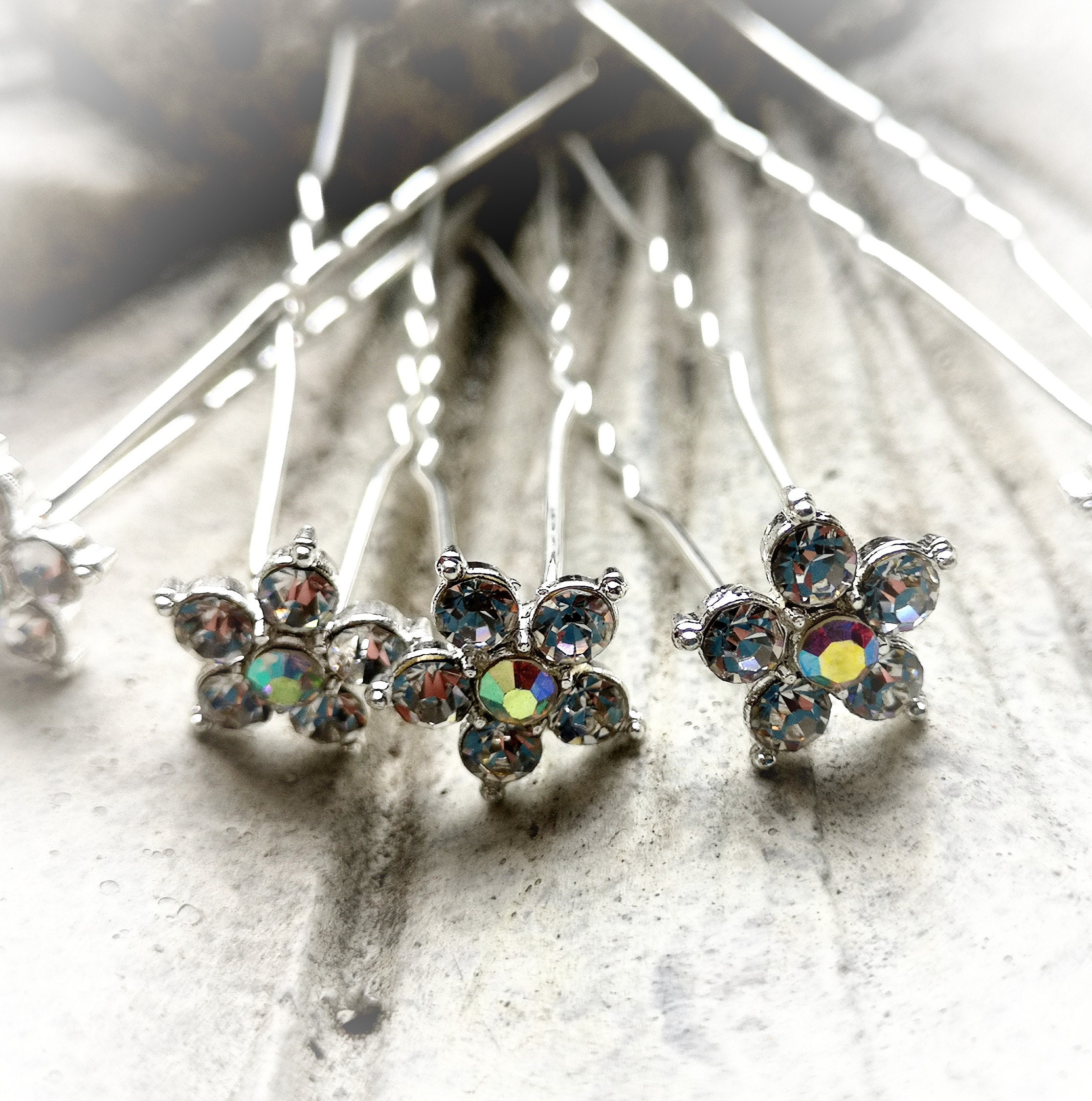 5 20 Hair Clips Hair Clips Silver Hair Pins Flower Etsy